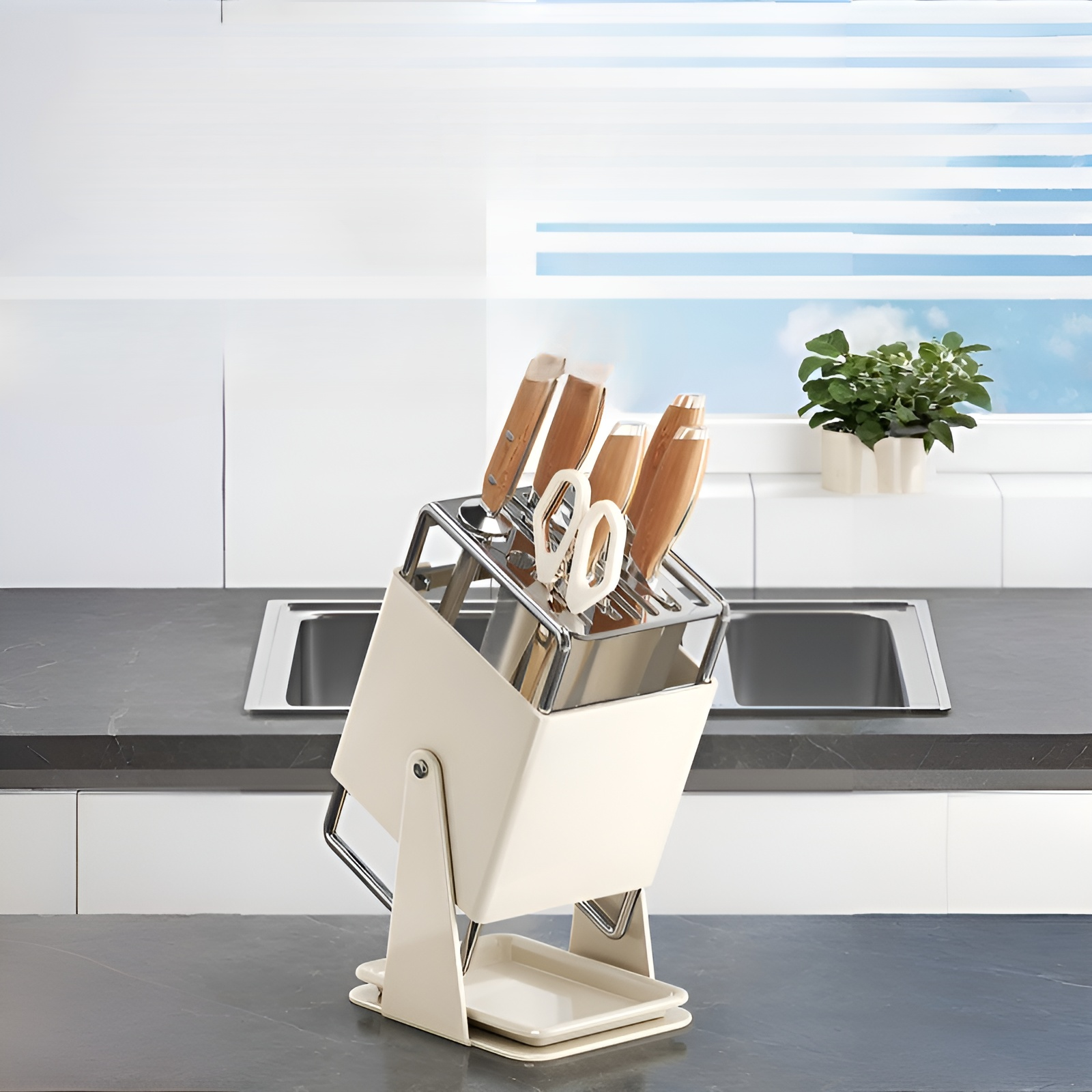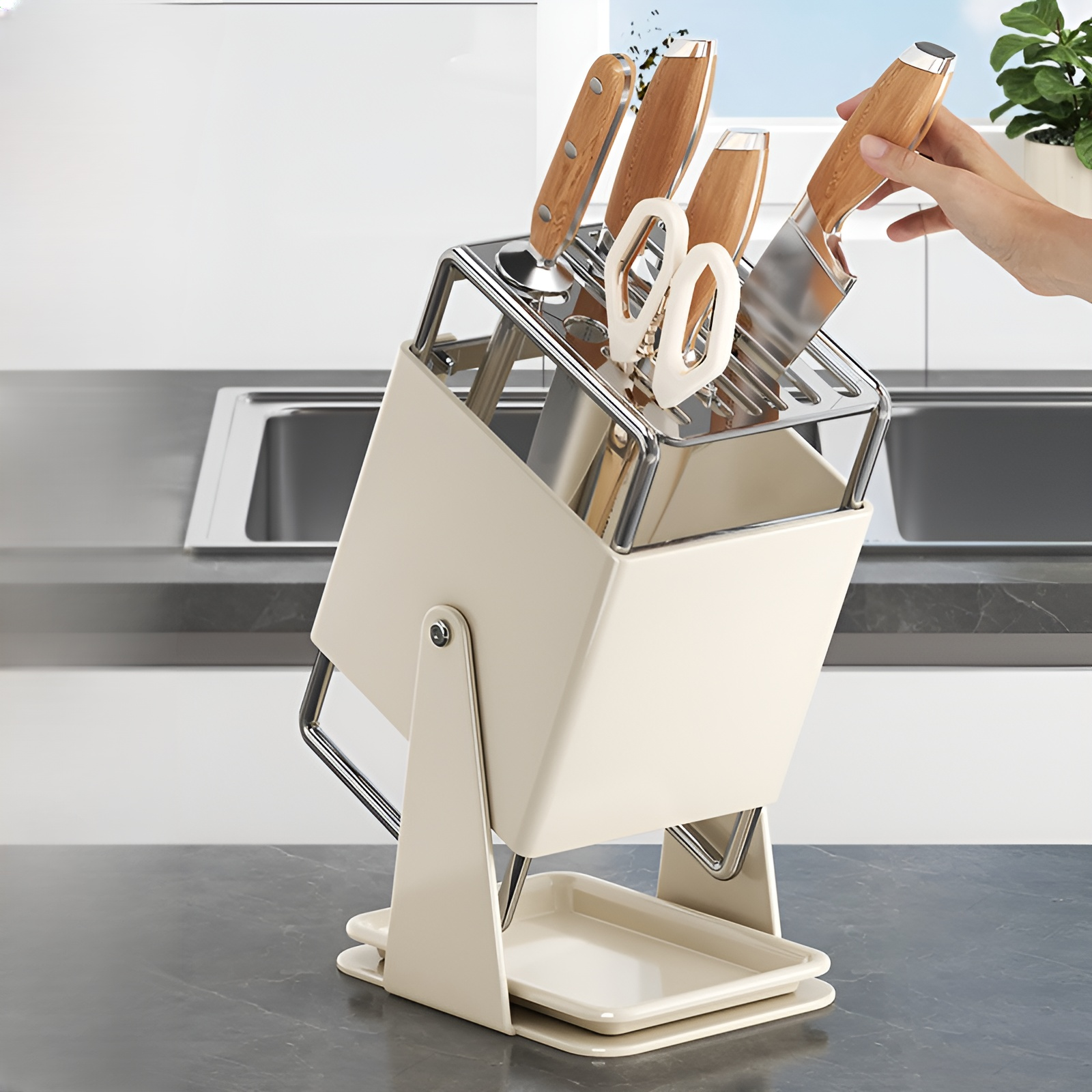 가정용 칼걸이 선반 주방 스탠드 회전식 물받이 수납 밴드 오픈 식칼걸이